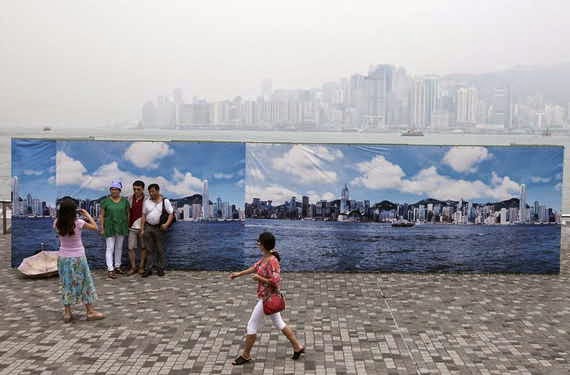 2. Mesterségesen kivetített hongkongi égbolt turistáknak